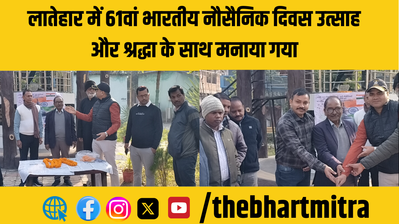 लातेहार के कारगिल पार्क में 61वाँ भारतीय नौसैनिक दिवस बड़े उत्साह सम्मान और देशभक्ति की भावना के साथ मनाया गया।