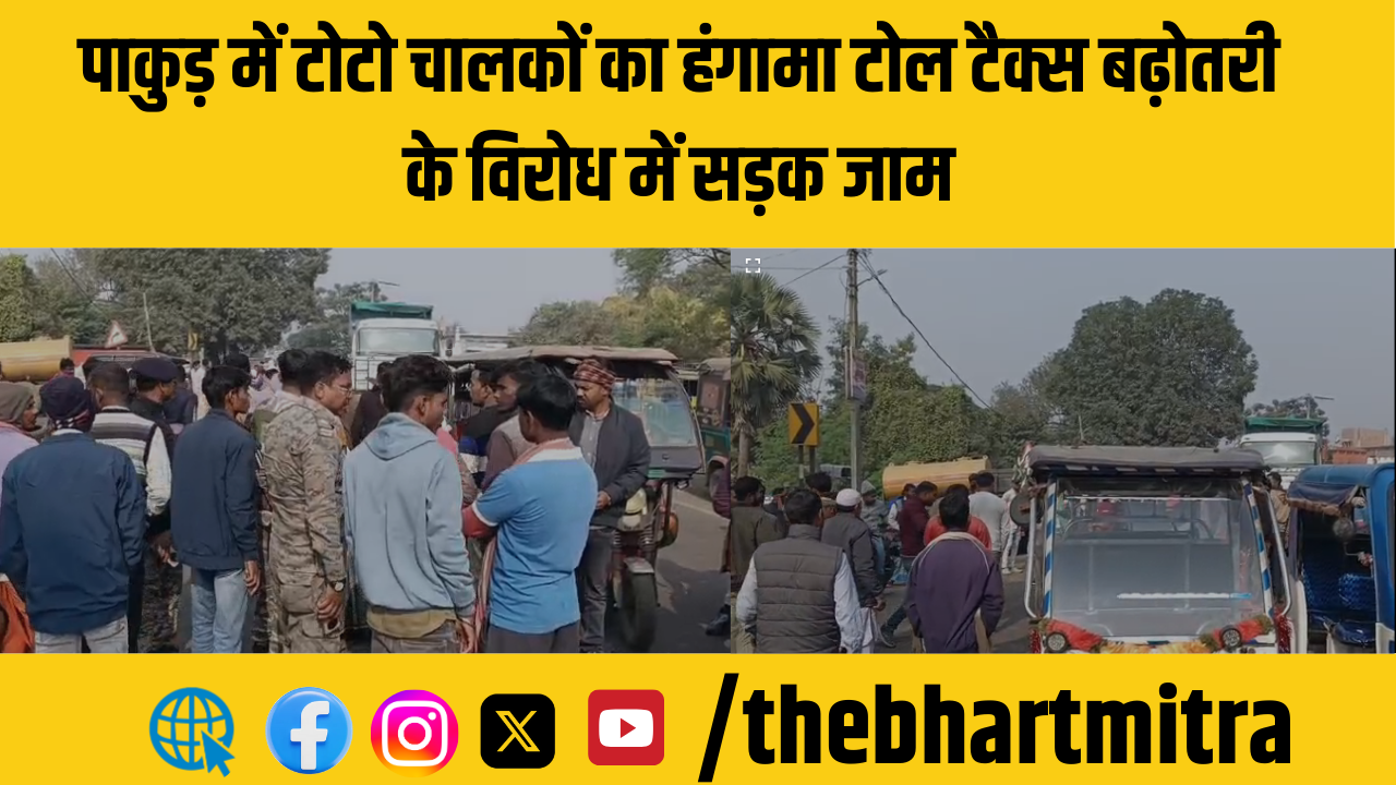 पाकुड़ के हिरणपुर प्रखंड में टोटो ऑटो चालकों ने नगर परिषद द्वारा टोल टैक्स बढ़ाने के विरोध में बुधवार को मोहनपुर मोड़ के पास मुख्य सड़क को जाम कर दिया।