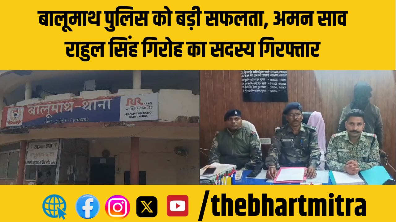 बालूमाथ थाना पुलिस ने अमन साव राहुल सिंह गिरोह के एक सक्रिय सदस्य को गिरफ्तार करने में सफलता हासिल की है।