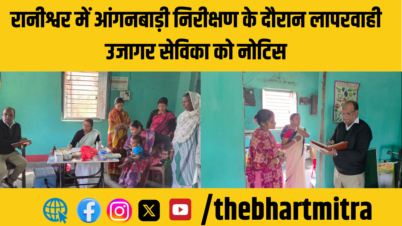 रानीश्वर प्रखण्ड विकास पदाधिकारी-सह-बाल विकास परियोजना पदाधिकारी राजेश कुमार सिन्हा ने गुरुवार को पाटजोर पंचायत के आंगनबाड़ी केंद्र पाटजोर 2 का लगभग 11:00 बजे औचक निरीक्षण किया।