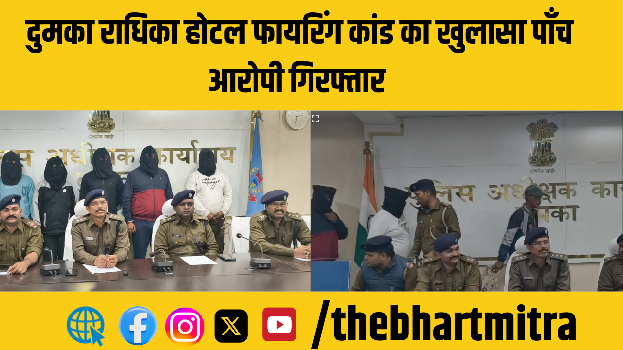 दुमका के राधिका होटल में 30 नवंबर की रात हुई फायरिंग कांड का पुलिस ने पूरी तरह खुलासा कर दिया है। इस मामले में शामिल पाँच आरोपियों को गिरफ्तार कर जेल भेज दिया गया है।