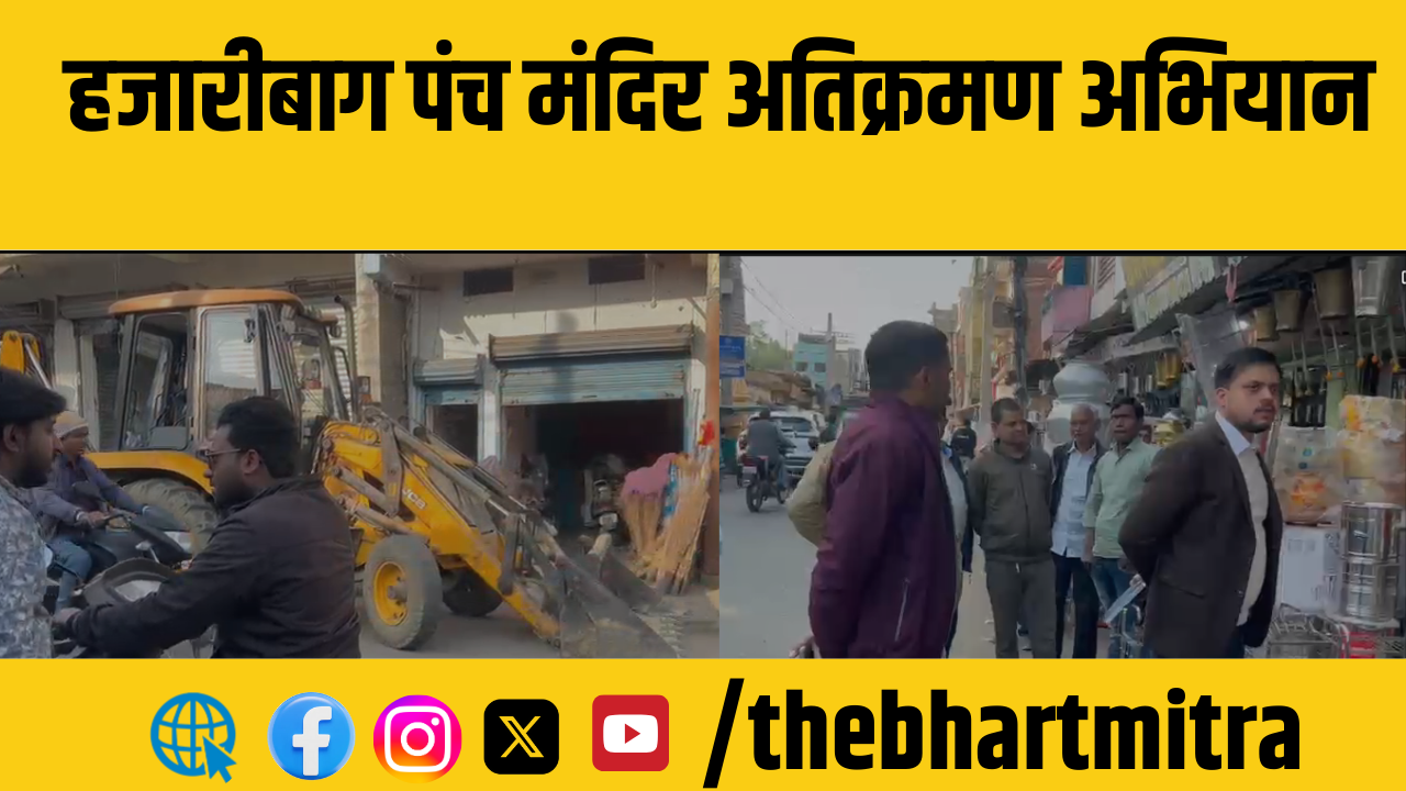 हजारीबाग नगर निगम ने मंगलवार को पंच मंदिर इलाके में व्यापक अतिक्रमण हटाओ अभियान चलाया।