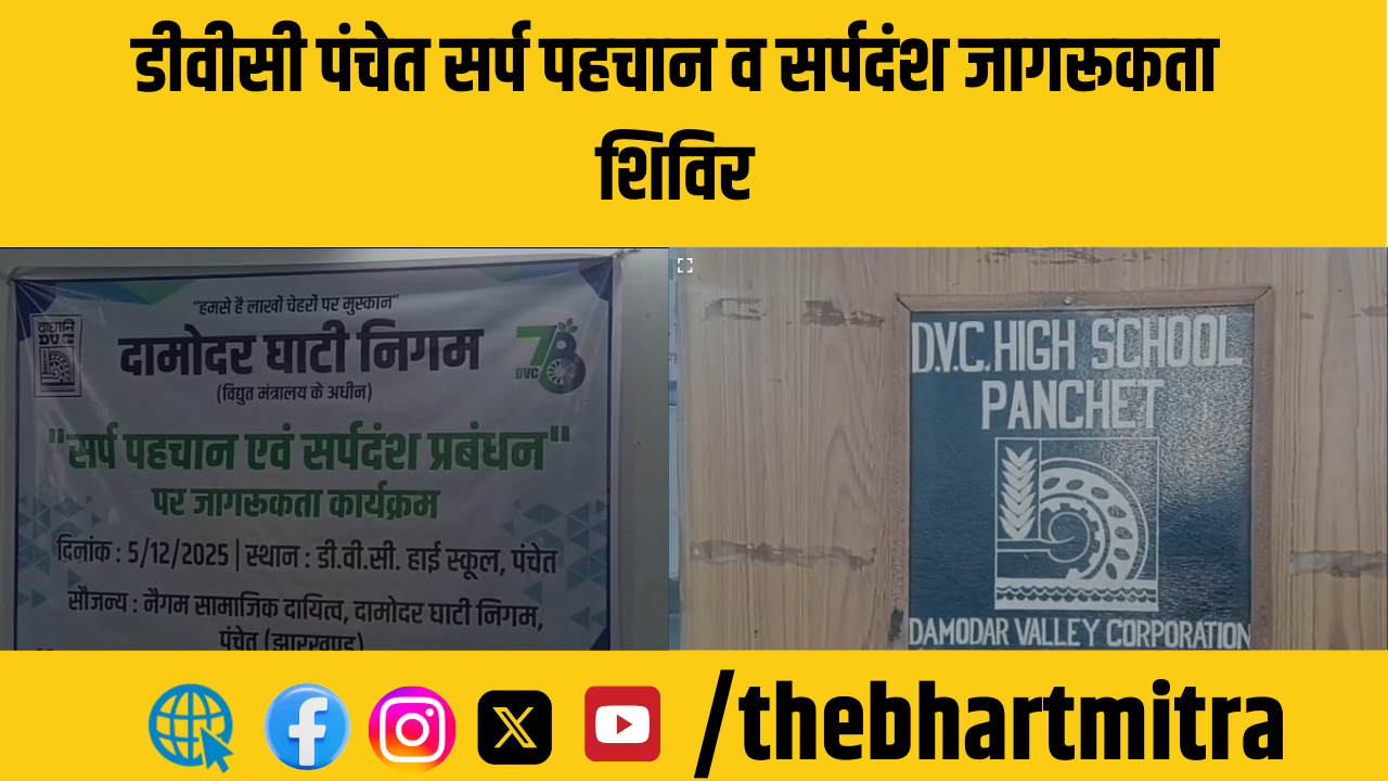 धनबाद निरसा दामोदर घाटी निगम (DVC) पंचेत द्वारा सर्प पहचान और सर्पदंश प्रबंधन पर एक दिवसीय जागरूकता कार्यक्रम का आयोजन पंचेत उच्च विद्यालय में किया गया।
