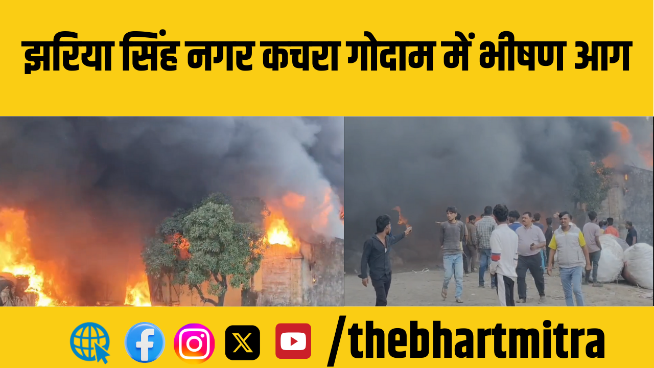 धनबाद झरिया थाना क्षेत्र के सिंह नगर में शुक्रवार को एक कचरा गोदाम में अचानक भीषण आग लग गई।